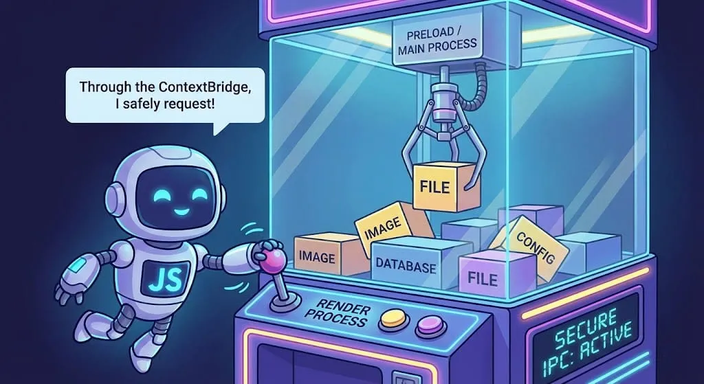 为了安全,现在官方推荐使用 ContextBridge。这就像在员工和 CEO 之间设立一个“传达室”,防止外部黑客通过网页直接控制 CEO。
